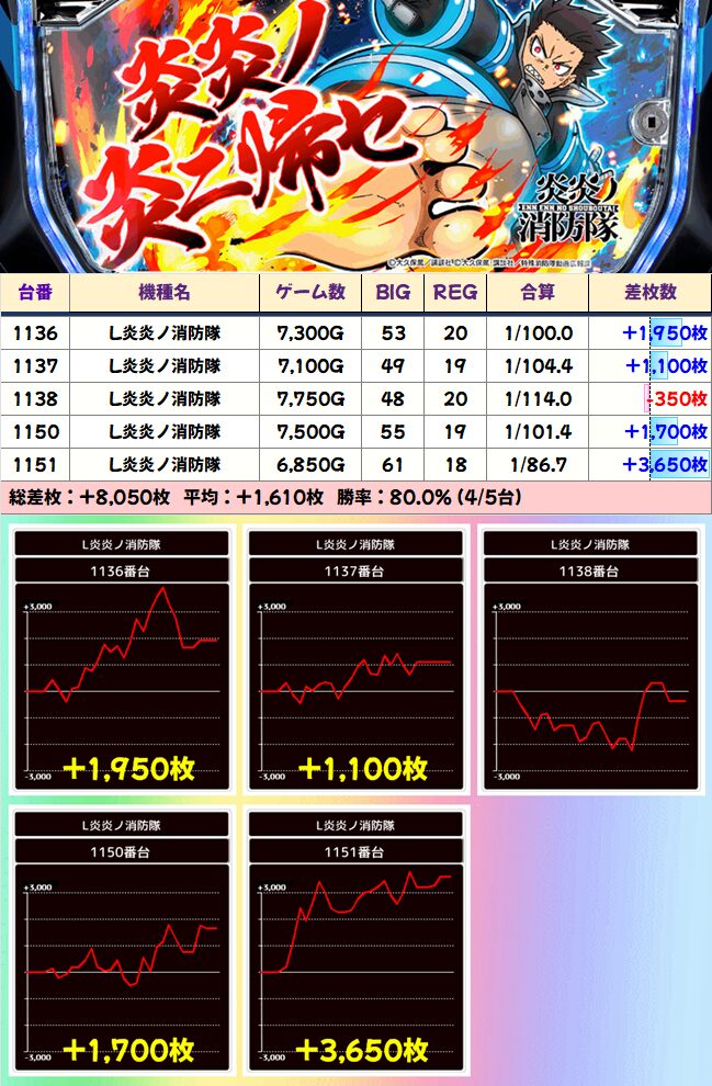 8のつく日ではおなじみの仕掛けである第8特殊消防隊。全台7000G前後回されており、不発もあればどしっかり差枚数はプラスです!