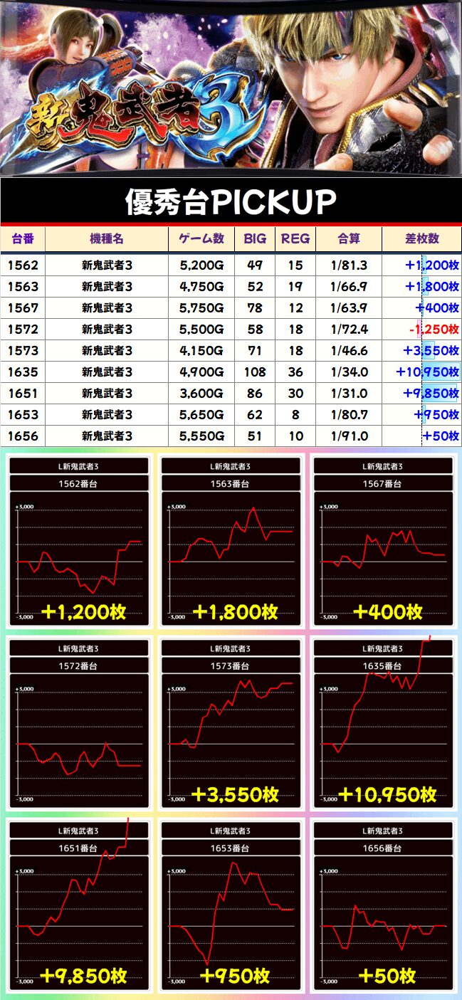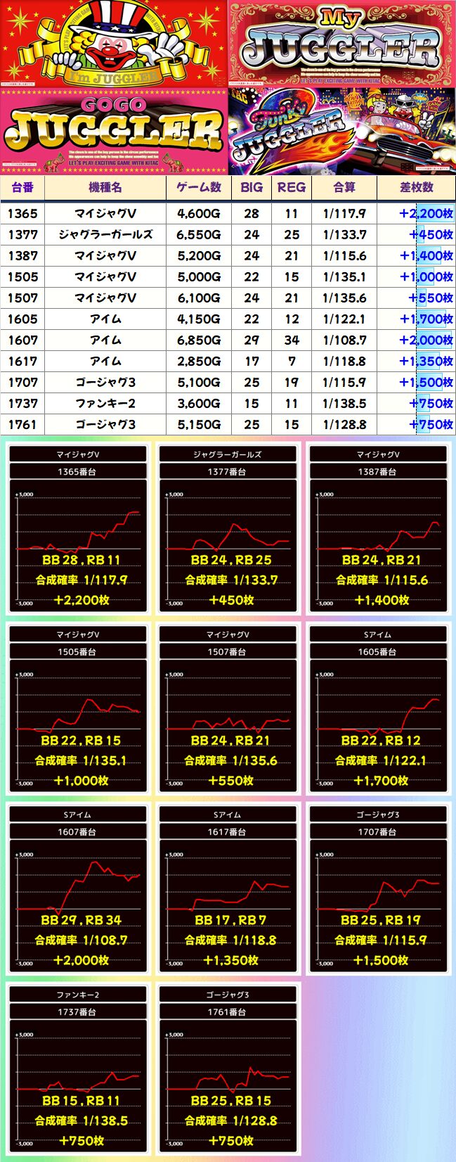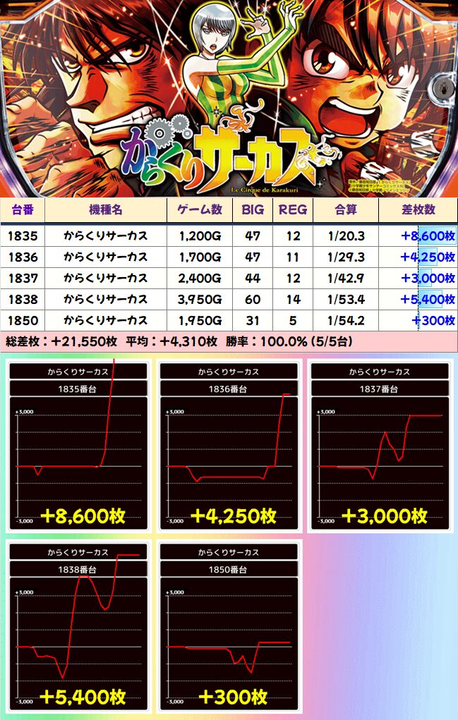 超からくりサーカス突入がこんな近辺で並ぶのも珍しいですね。稼働は少ないですが設定差がもしあるならココの並びには注目かと。