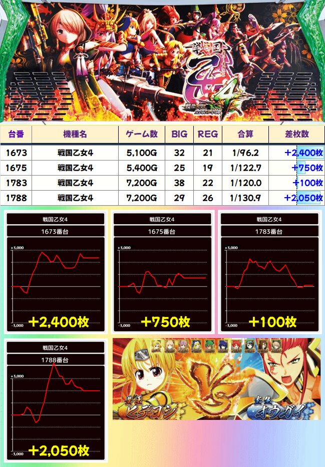 いざ!番長同様のオススメ機種にあがっていた乙女4。稼働も5000G以上と回されており、初当りもしっかりとれてます。
