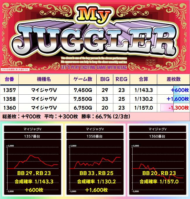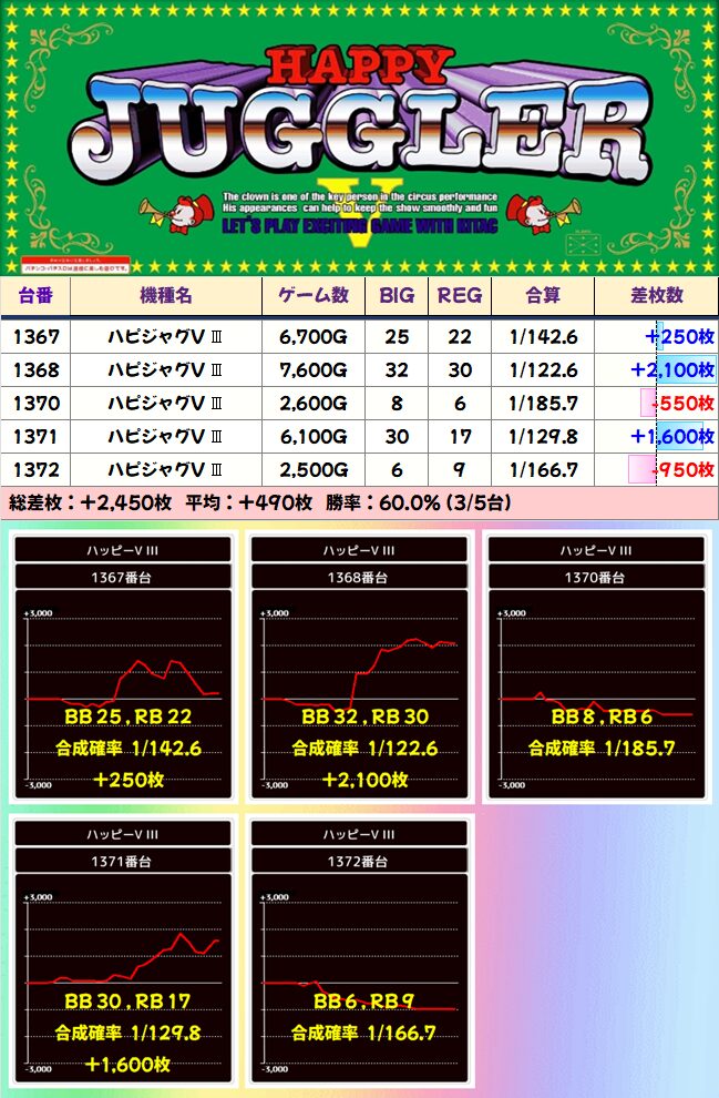 ジャグも5台設置のハッピーに何やら強い挙動あり。少数台のシリーズ機であれば、今後チェックしてみたほうがいいかも?