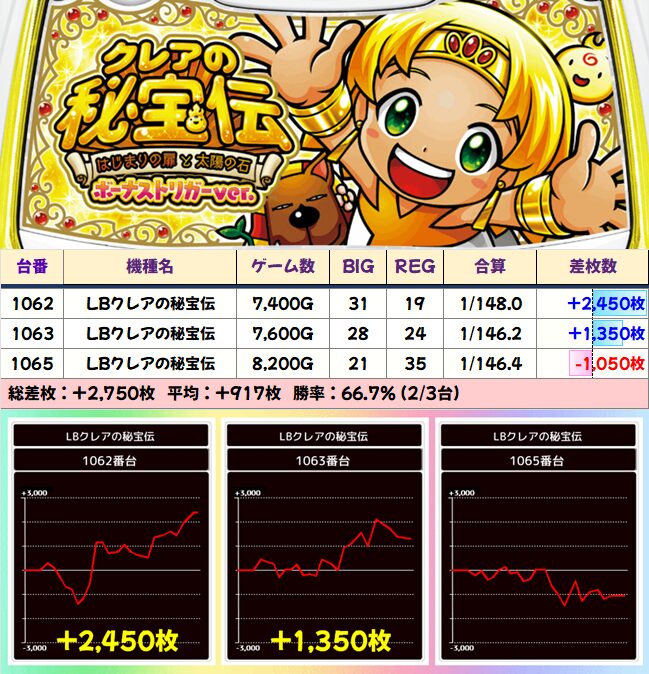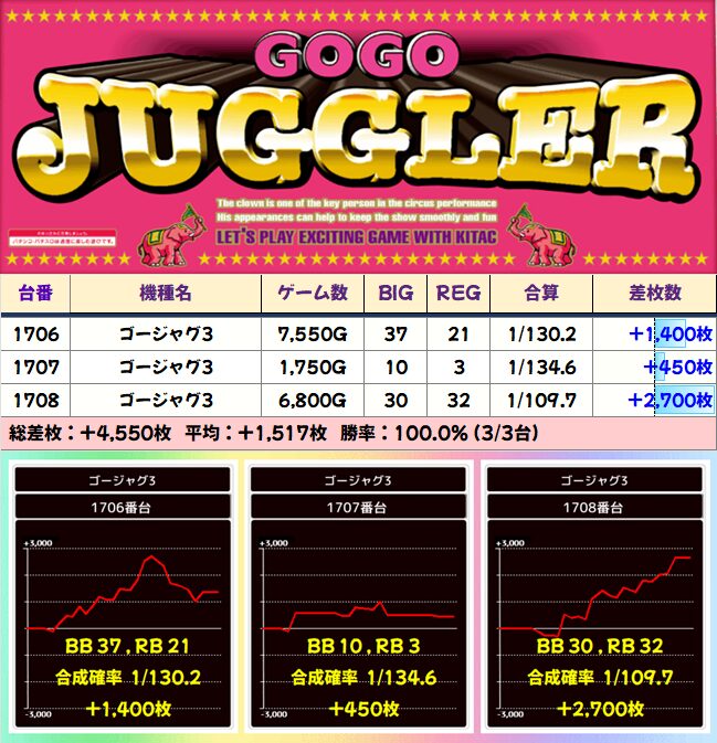 かなり渋い3台並びと思われるのがココ。稼働も5000G以上回されてこの安定挙動なので、間違いないと思われます。