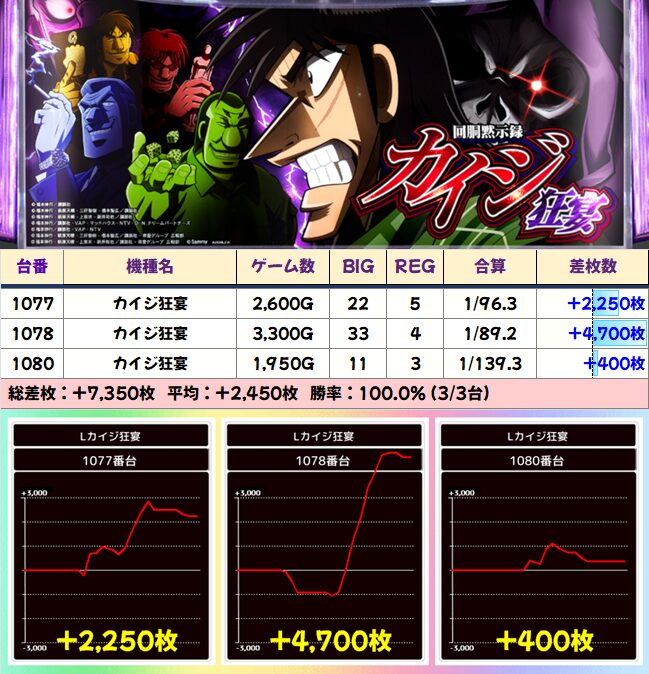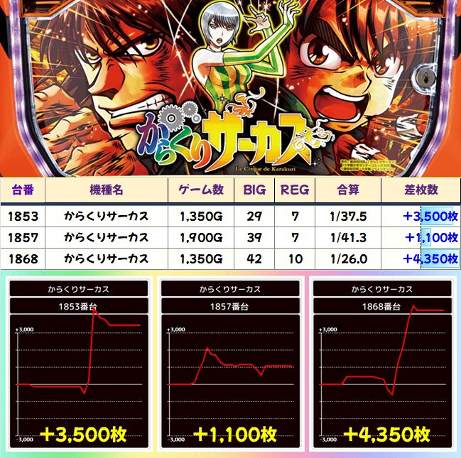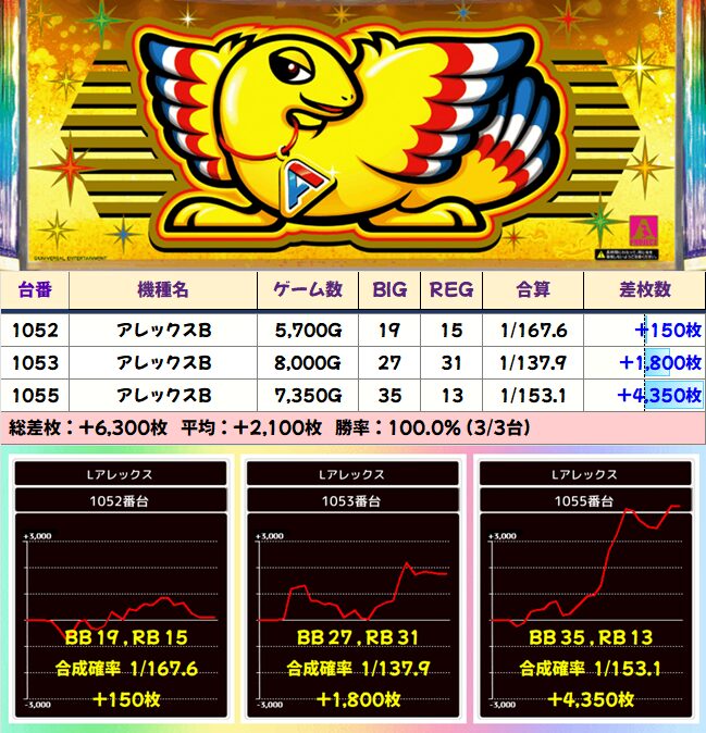元のスペックが甘いのでいつものデータは厳しいのが多めのアレックスですが、この日は明らかに稼働も合算も抜群でしたね!