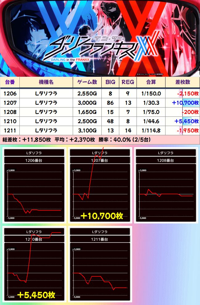 MAXX到達からの一撃性がすごいダリフラを物語るグラフとデータ。BIGの回数がとんでもないことになってます。