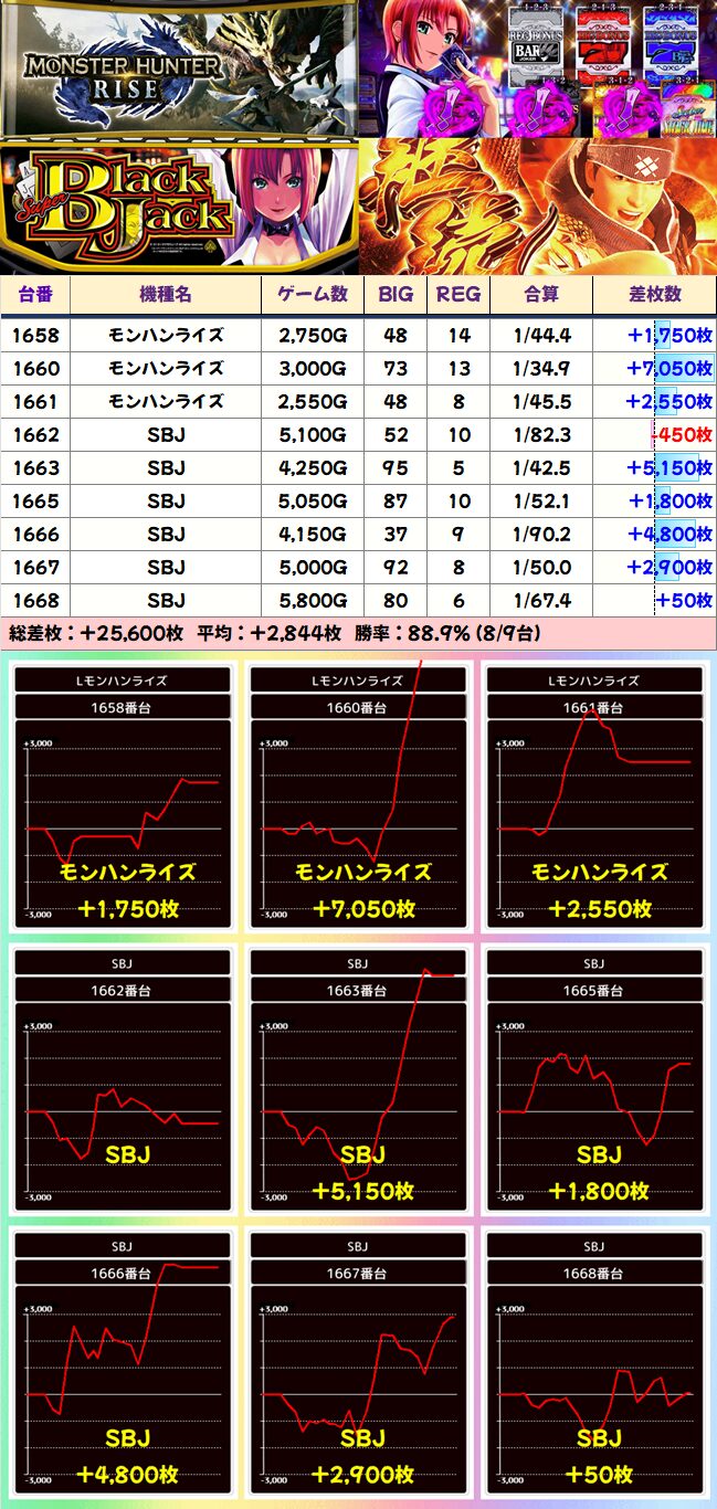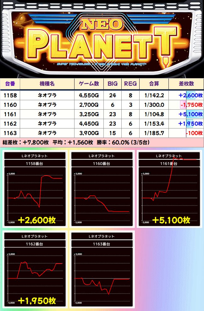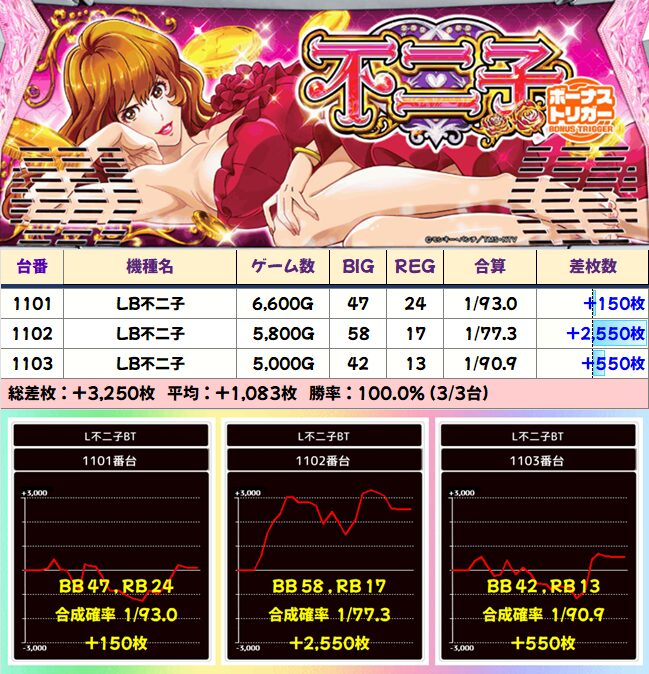 パラミサがよく仕掛けを行うBT機の新機種。スーパーBIGのBTループ次第なところもありますが、全台5000G以上の稼働で勝率100%です。