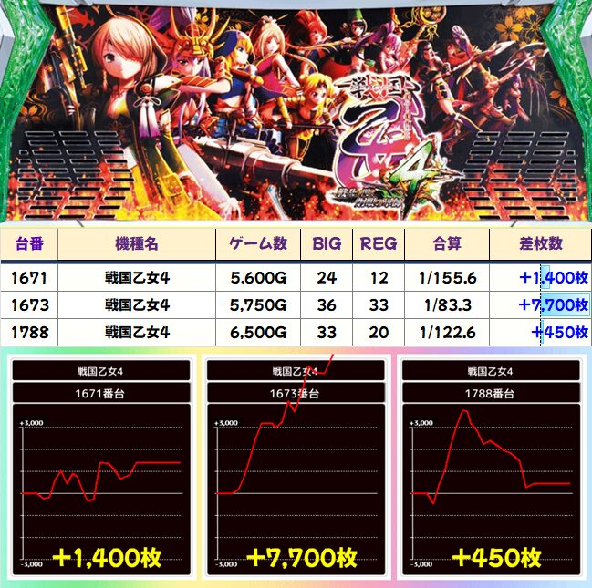 垂直にあがるようなグラフは青7絡みのビッグバンが濃厚と思われます。ここに設定差があるのでしょうか?