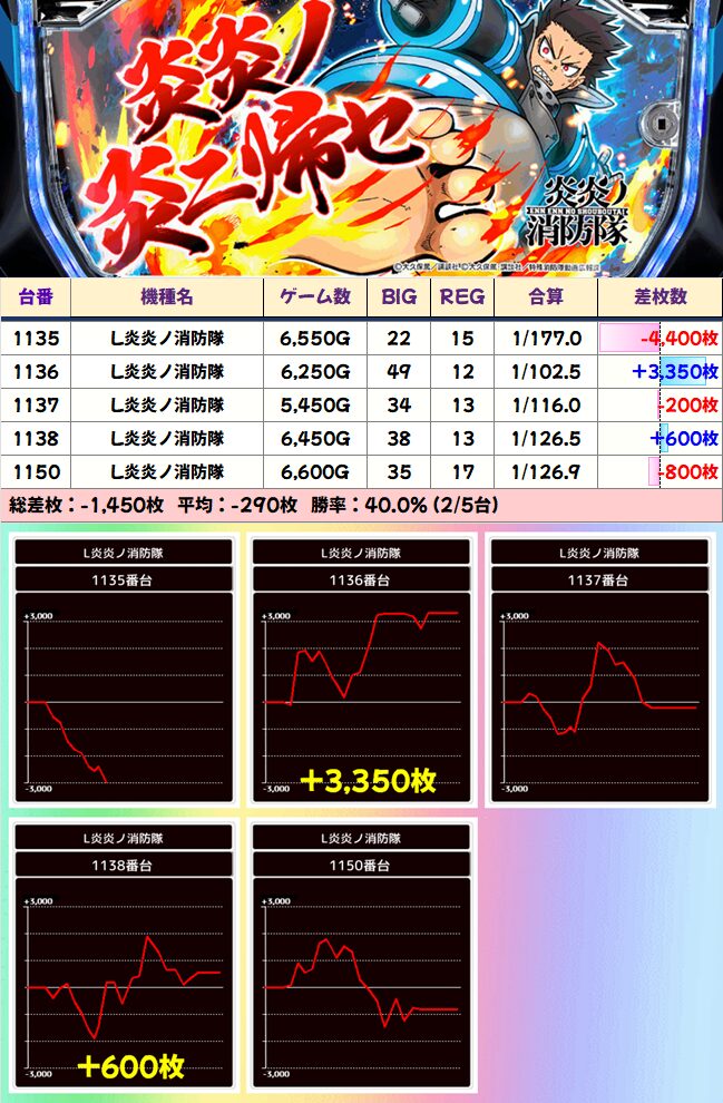 定番仕掛けということで全台6000G近く回されてます。1135番台だけ奈落の底に沈んでいったのは一体…。