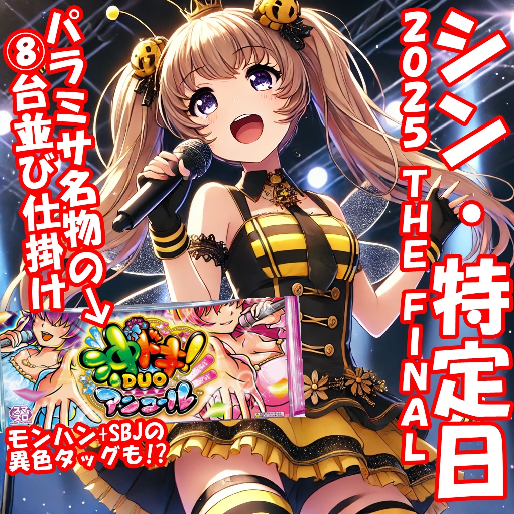 12月28日(日)│パラッツオ三郷中央│2025年最後のシン・特定日×創業月間FINAL!パラミサ名物8台並び仕掛けは…2カ所!?新台の沖ドキアンコールでカナ&ハナの熱狂ライブに華が咲く!!