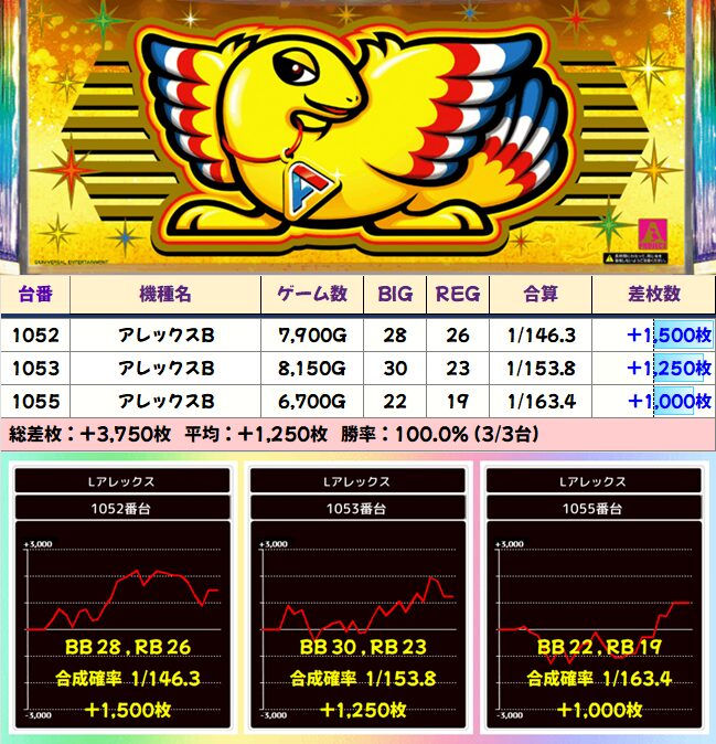 アレックス 平均+1250枚