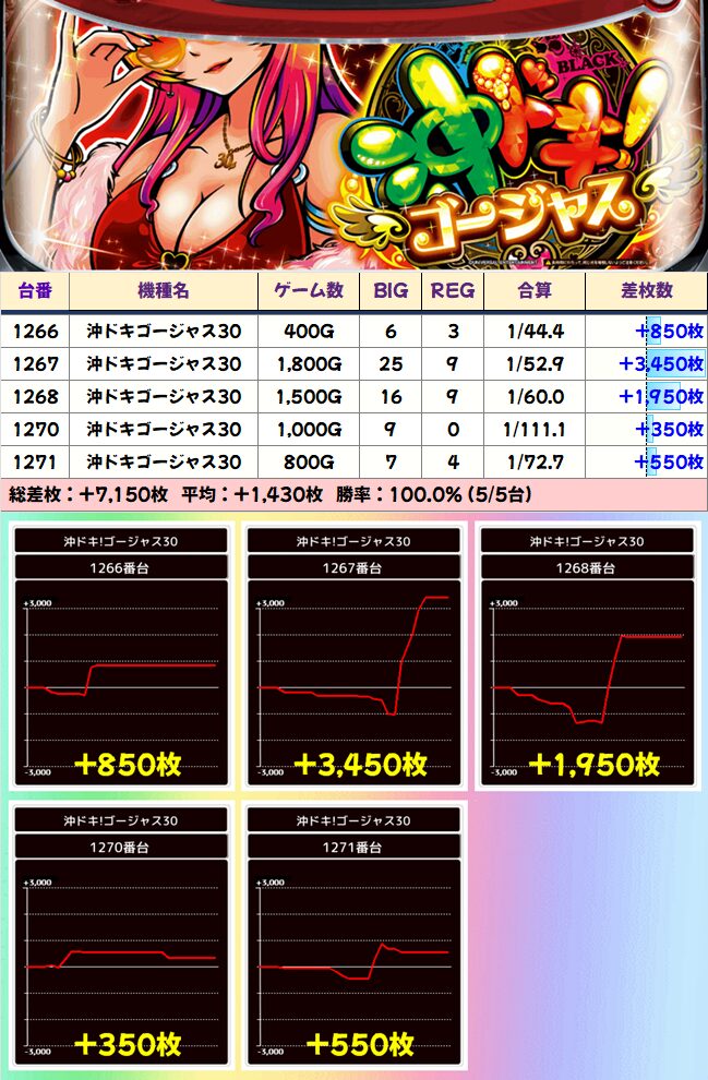 沖ドキゴージャス 平均+1430枚