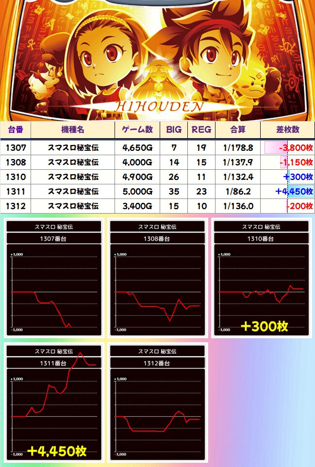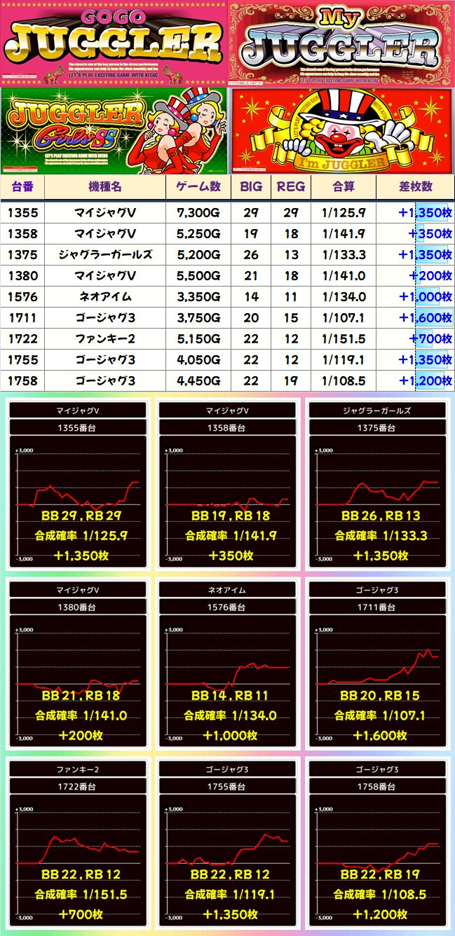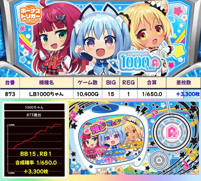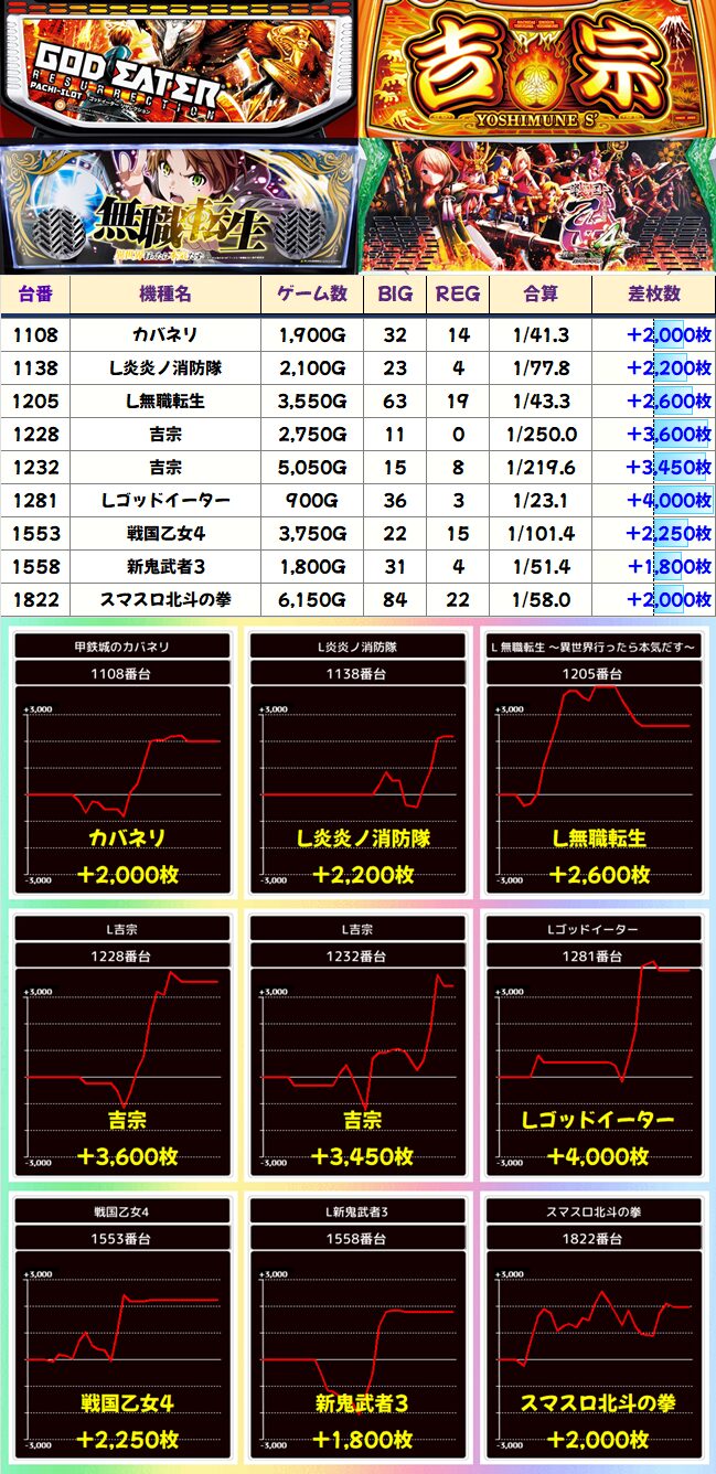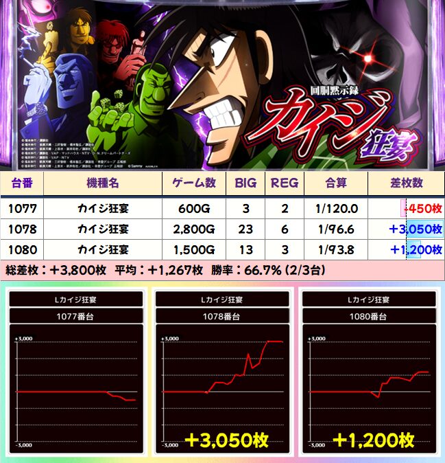 左右両端がかなり優秀な展開。真ん中の台はかなりハマってしまったとはいえ、粘っていれば結果は違ったかも?