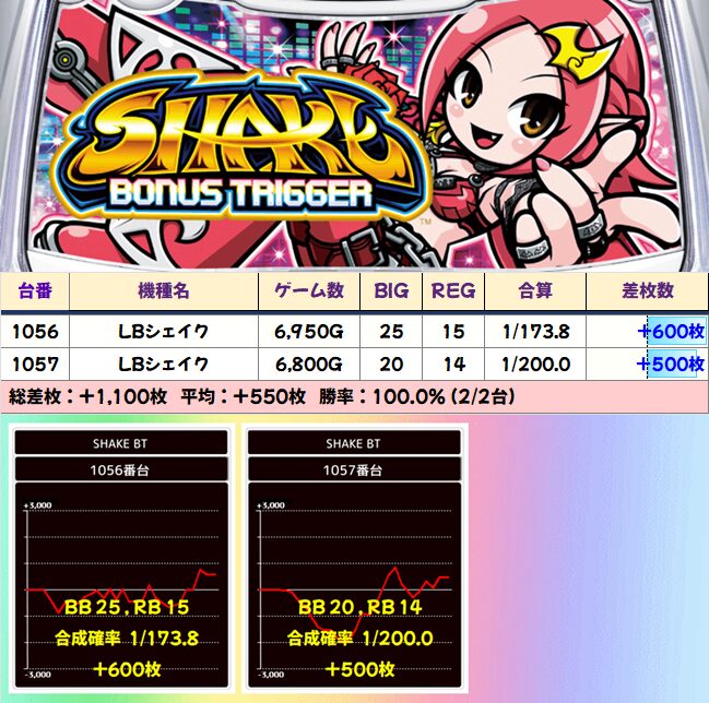 シェイクBT 平均+550枚