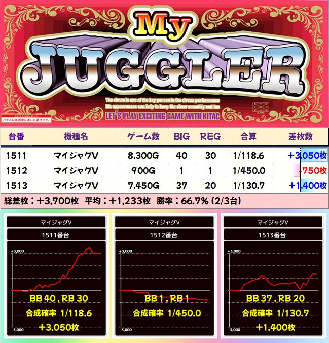 マイジャグ:1511-1513 平均+1233枚