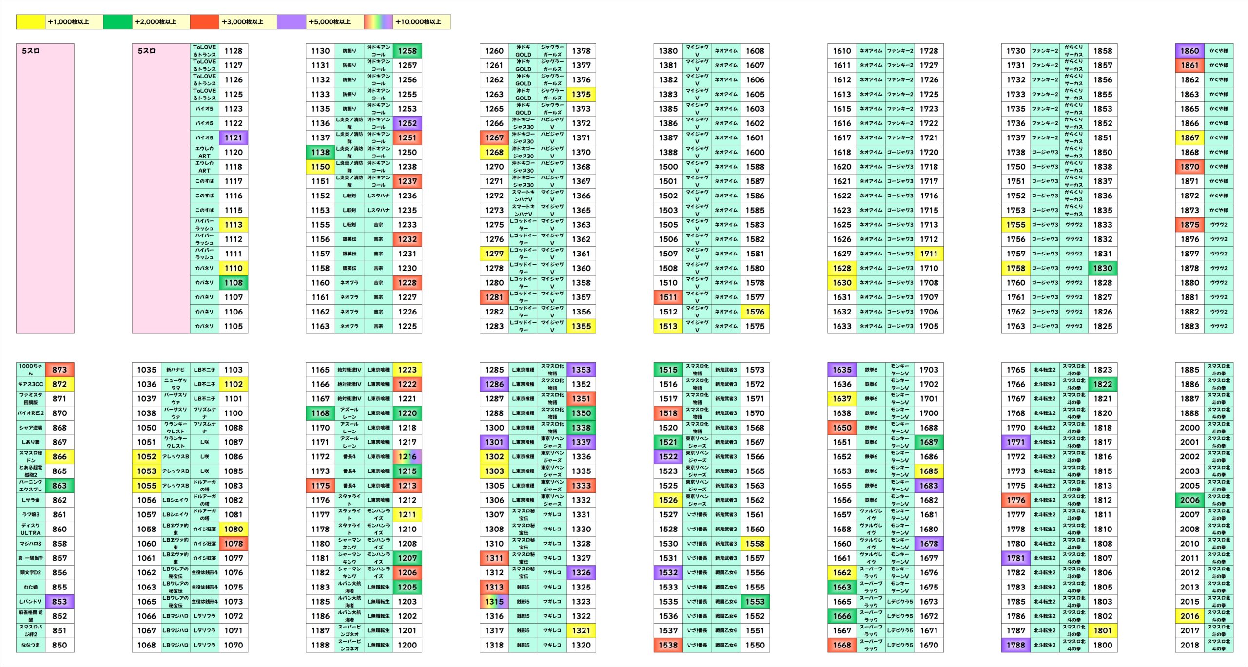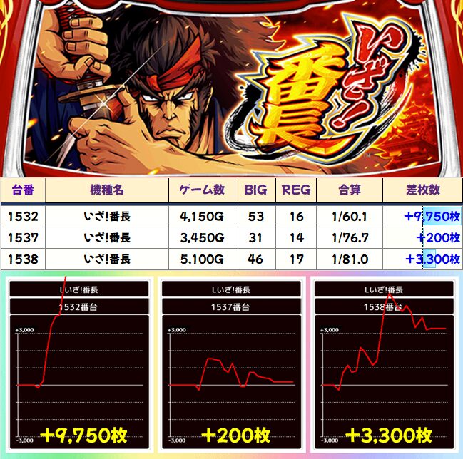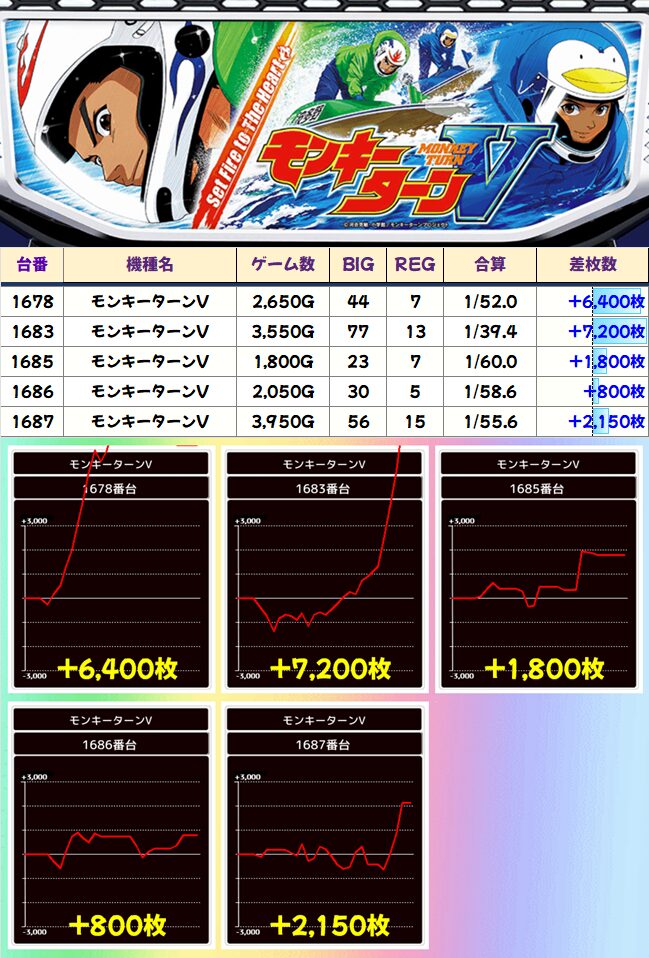 差枚での万枚が飛び出しています。+5000枚で終ったところをまた伸ばしている点にも注目。