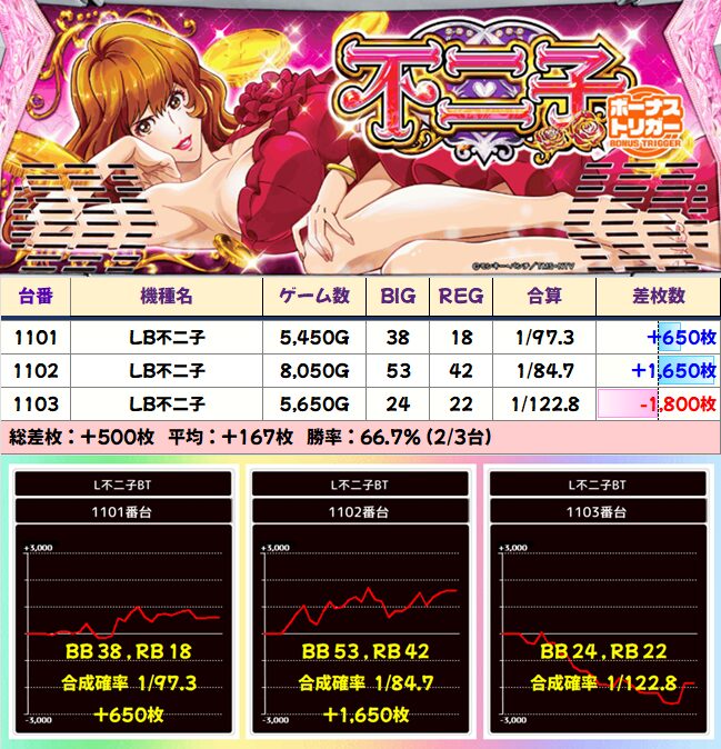 不二子 平均+167枚