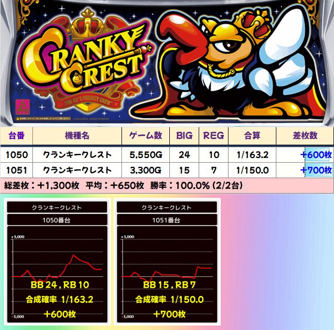 クランキークレスト 平均+650枚