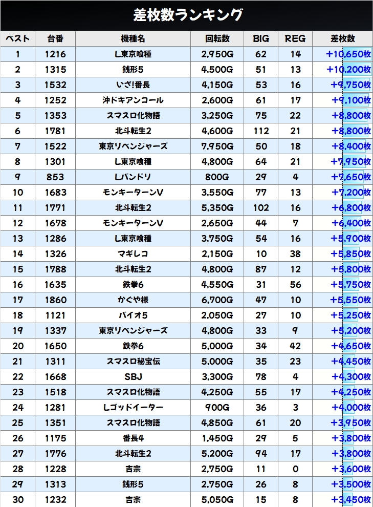 出玉ランキングTOP30