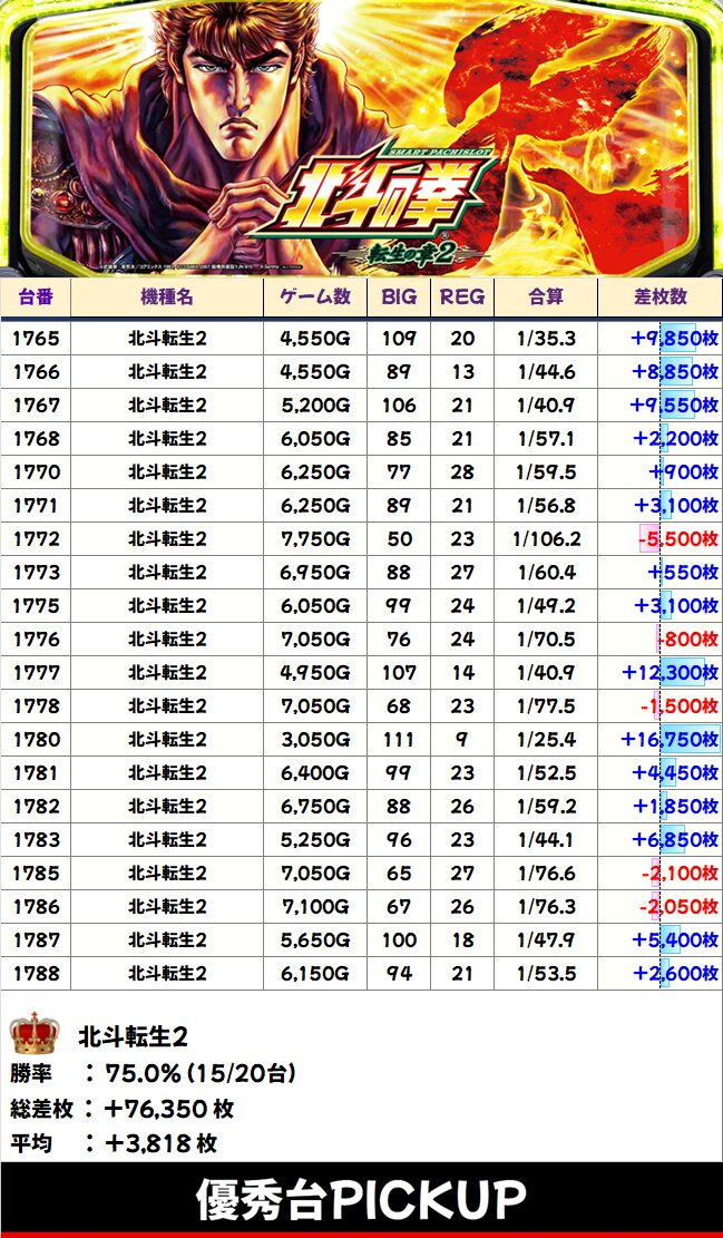 北斗転生2 平均+3818枚