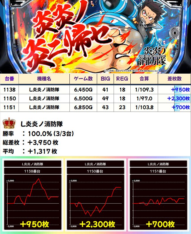 前作の炎炎もまだまだ健在。今後の⑧の日は新旧合わせた炎炎を狙っていくのが定番になりそうです。