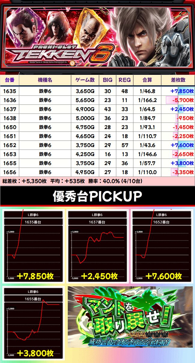 鉄拳6 平均+535枚