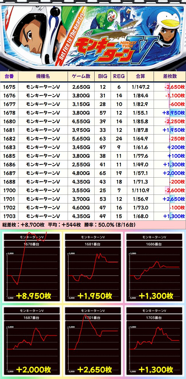 モンキーV 平均+544枚