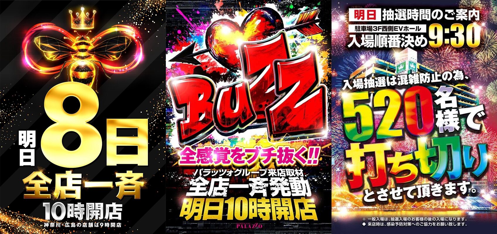 今回、炎炎ノ消防隊2という⑧の日定番仕掛け対象機種(第⑧特殊消防隊)の続編があることで、シン・特定日としては見どころの一つとなります。さらに、今回はパラッツオグループ来店取材のBUZZがあります!