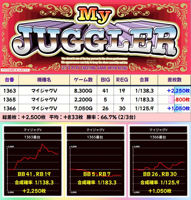 マイジャグ:1363-1366 平均+833枚