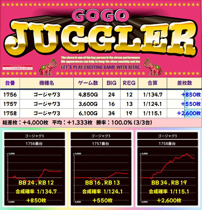 ゴージャグ:1756-1758 平均+1333枚