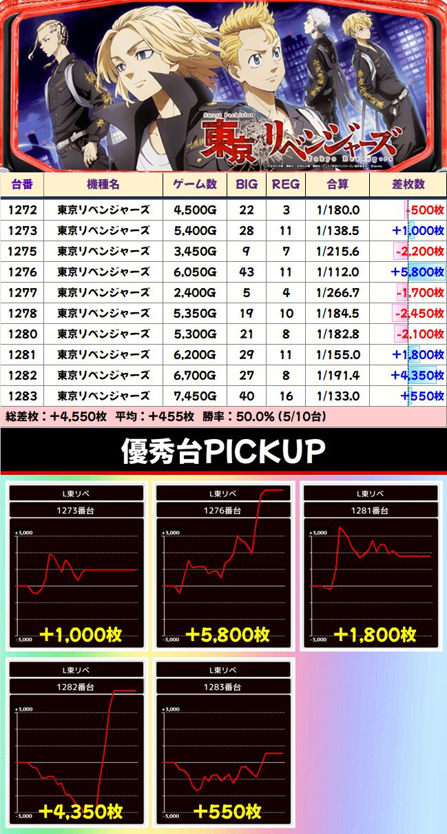 東京リベンジャーズ 平均+455枚