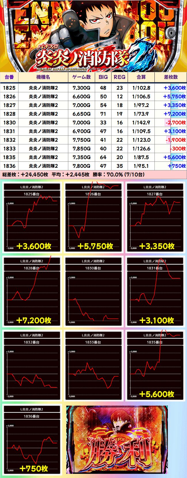 第⑧特殊消防隊は完全に2代目の時代になったか?今回もかなりの平均差枚を叩き出してるので、今後は⑧の日はまず炎炎2から狙うことをオススメします。