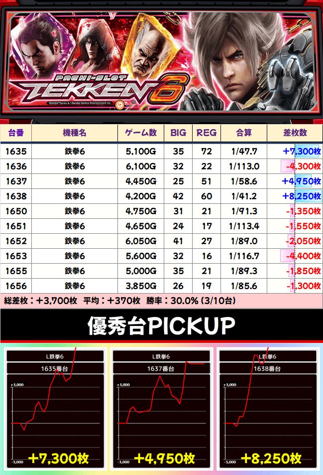 並び仕掛けにもみえなくない鉄拳6。伸びるときはとことん伸びる最近の中でもかなりの荒波台です。