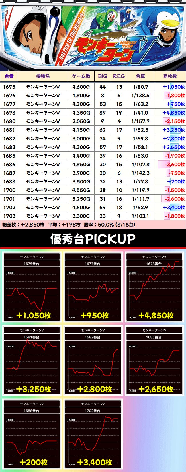 1678番台と1681番台の挙動が特に優秀。特に前者は青島SGの一撃ナシでこの出玉はかなり初当りがとれてる証拠。
