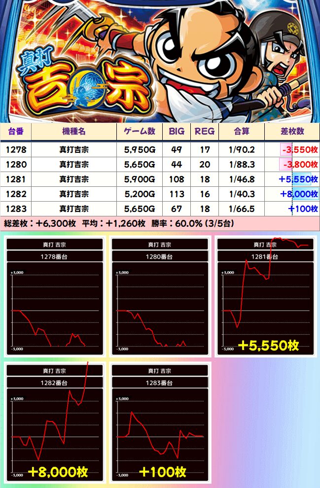 真打吉宗 平均+1260枚