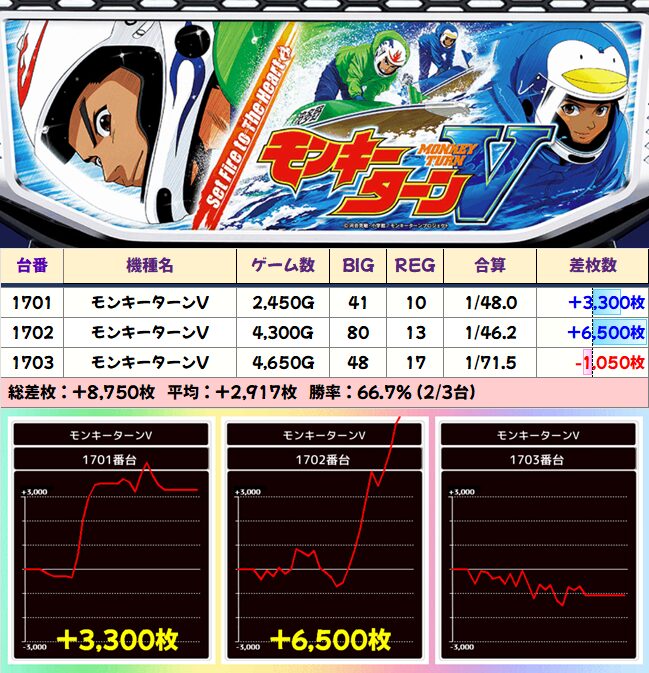 モンキーV:1701-1703 平均+2917枚