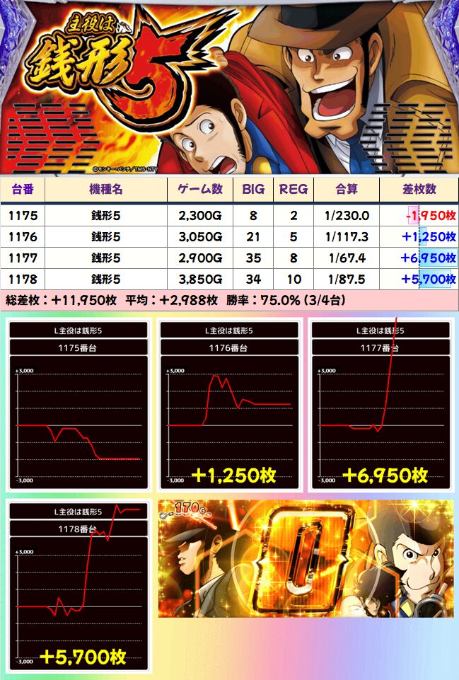 主役は銭形5 平均+2988枚