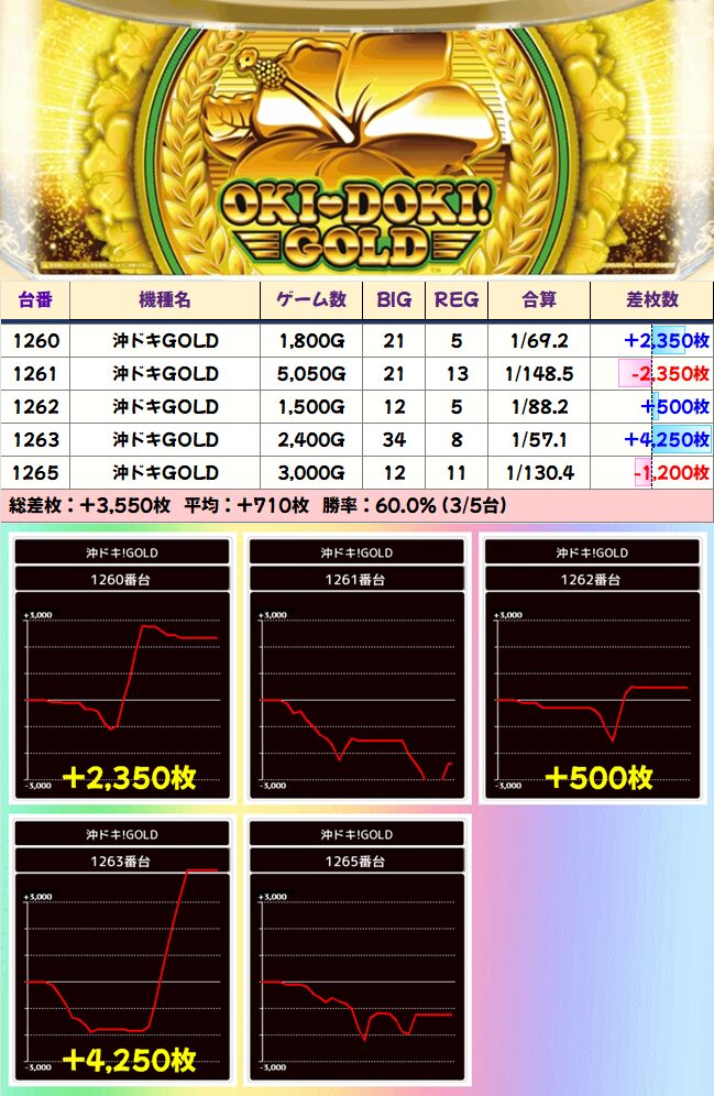 沖ドキGOLD 平均+710枚
