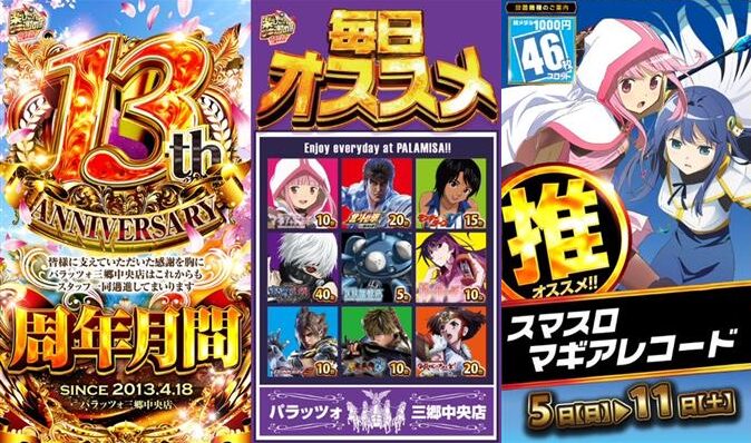 パラッツォ三郷中央店(通称・パラミサ)の特定日である⑧のつく日のシン・特定日。4月はパラミサの年イチ周年日となる4/18がある「周年月間」となり、気合の入り方も違う!?ギルドの事前ポストは下記の通りです。