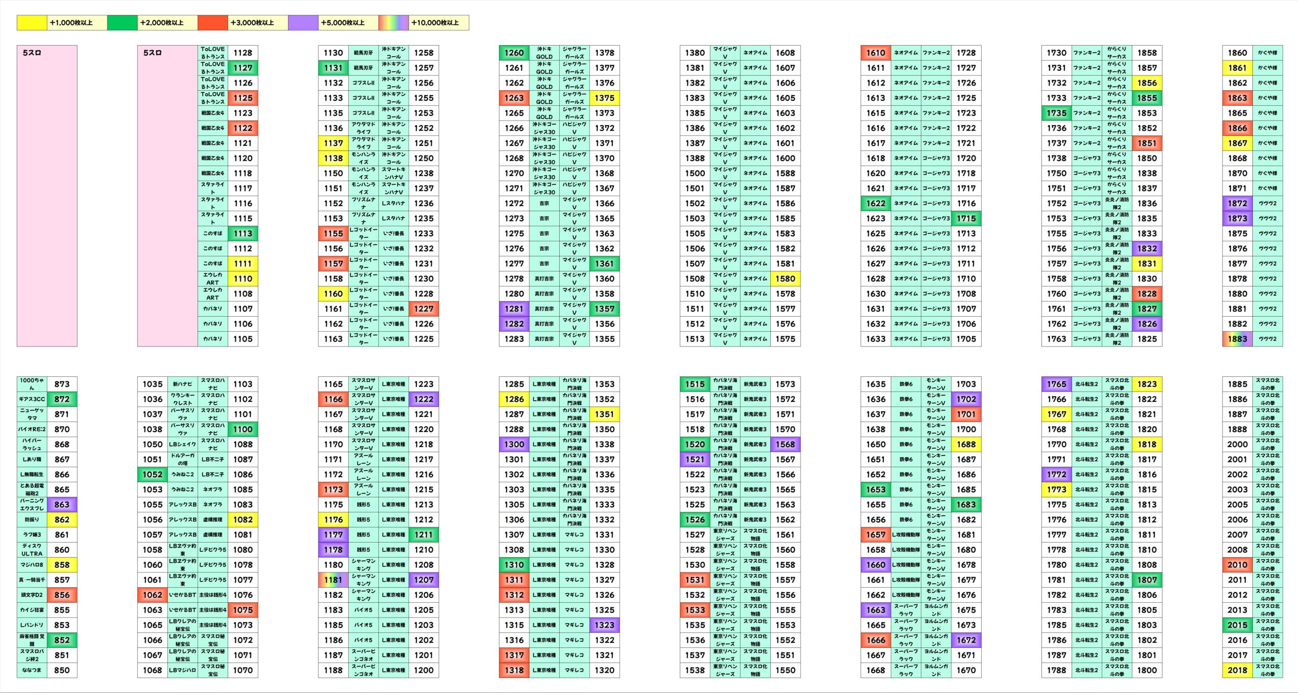 ヴヴヴ2と北斗転生2が並んで上位にランクイン。それでもTOPは起爆すると大きいマンキンがもっていきました。優秀台が多い東京喰種は30位以内であれば4台入ってます。