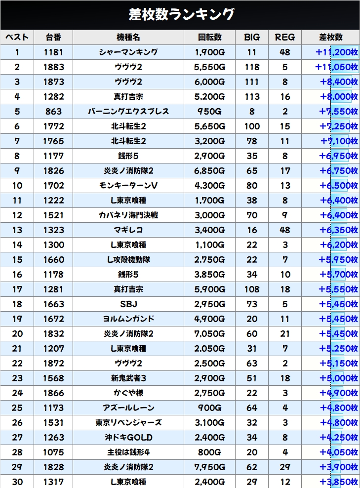 出玉ランキングTOP30