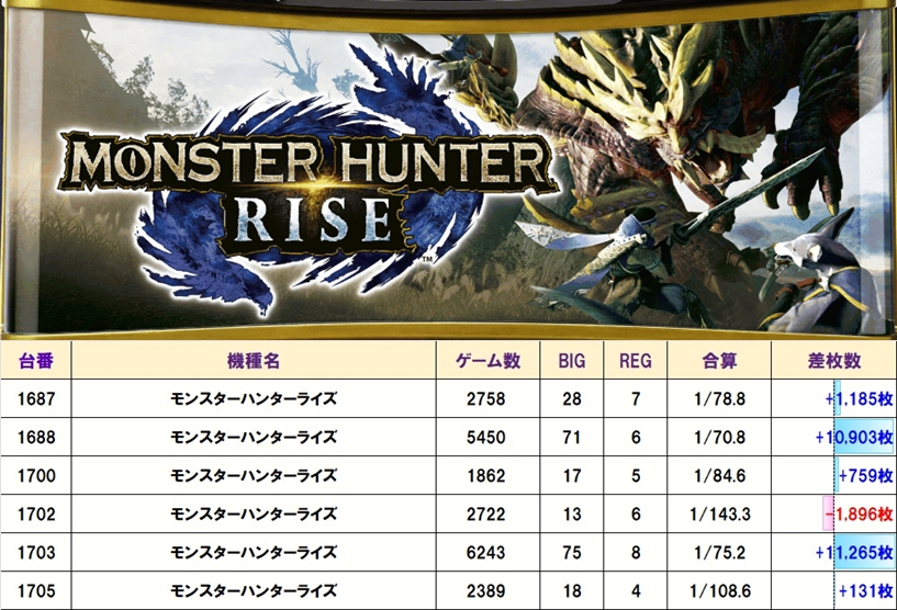 モンハンライズ (5/6台+)⏩Ave+3724.5枚