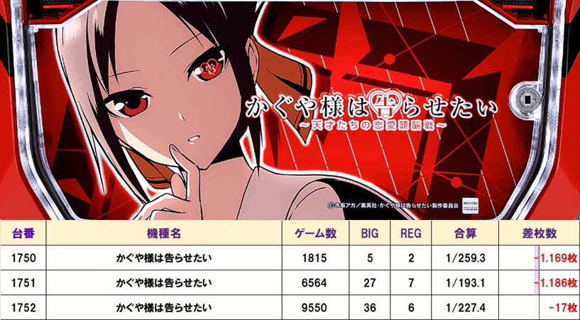 残念ながらローテ機種のかぐや様は不発に終わってしまいましたが、しっかりと回っているので、高設定挙動があったようですね!