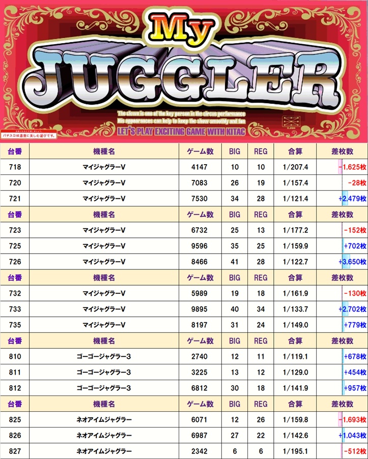 ジャグ系からはマイジャグVの+3650枚などが飛び出す安定した結果に!