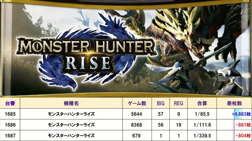 モンハンライズ(1/3台+)⏩Ave+1066.0枚