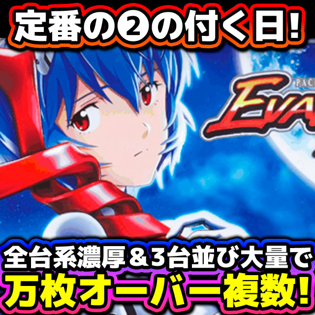 いずれの②の付く日も3台並び仕掛けが複数確認されており、ローテ機種には期間中に必ず優秀台が入る模様!