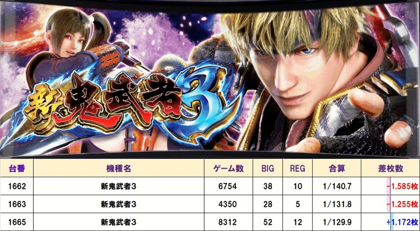 新鬼武者3(1/3台+)⏩Ave-556.0枚