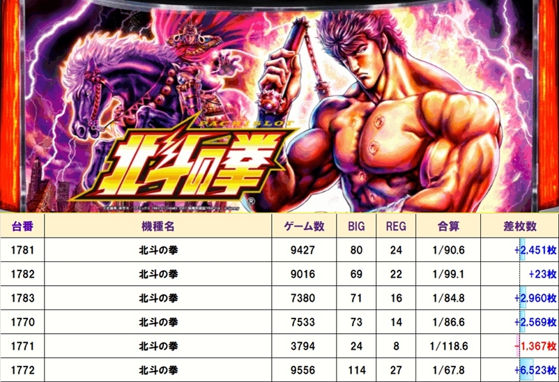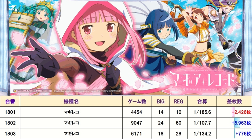 さらにマギレコからは+5963枚、ローテ中の北斗からも+6523枚が飛び出すなどアツい結果となりました!