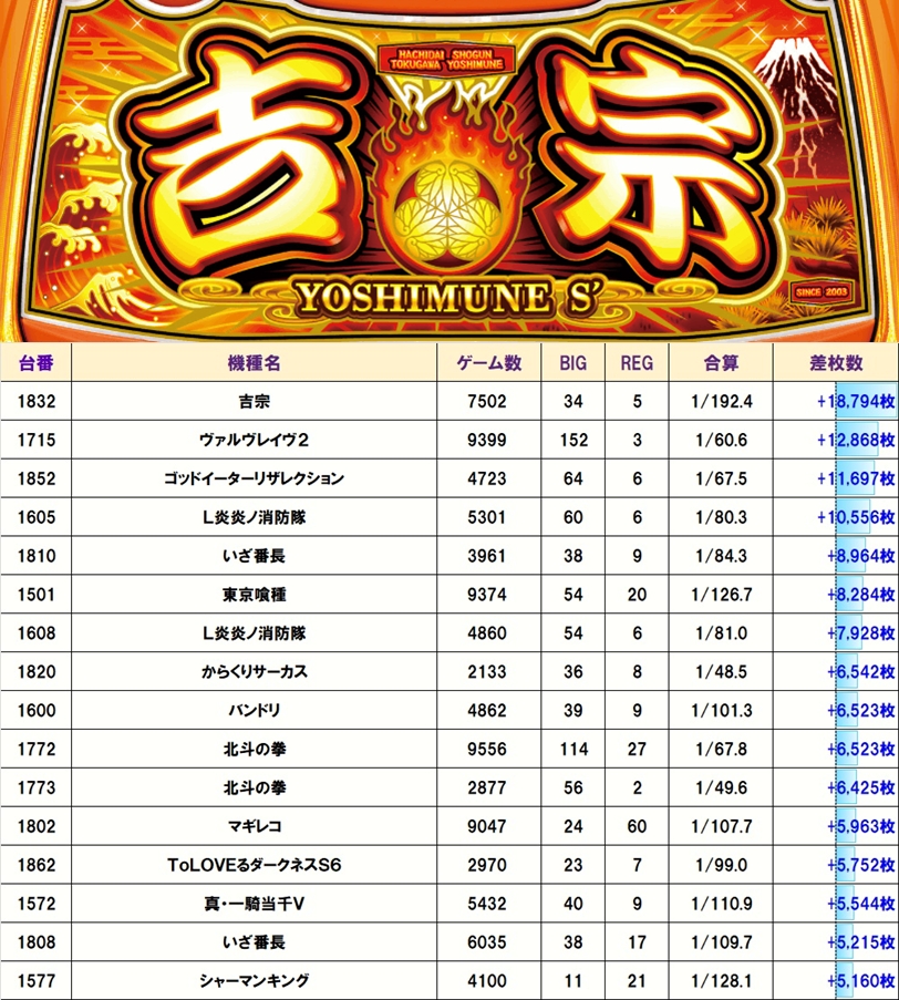 なんと吉宗からは+18000枚オーバーのコンプリートが飛び出しました!