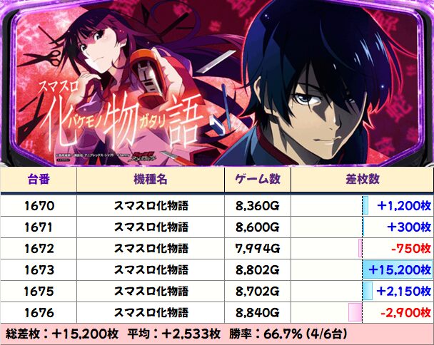 スマスロ化物語(4/6台+)➡平均+2,533枚
