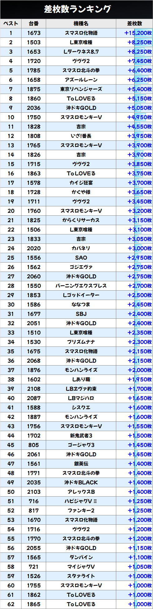 差枚数ランキング!