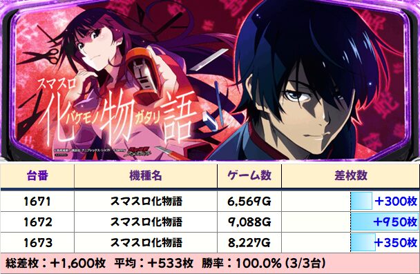 「化物語」&「LBヱヴァ約束」の並びは稼働抜群で全台プラスに!