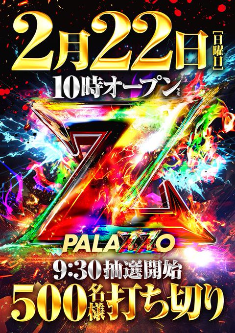 2月22日(日)|パラッツォ蕨|②が3つ並ぶ特別な1日は全台系、1/2系、大量の3台並びなど”定番仕掛けの質”が抜群!3台の万枚オーバーを筆頭に+5000枚以上が約20台と店内各所からモンスター台を確認!